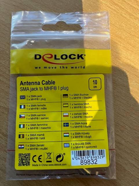 Because there is no entry for that on the case, we have to make a 5mm hole into the box (at the side where the usb connector is) and install a sma connector with a 10cm cable and MHF plug which fits into the connector on the pcb of the RX888MKII. Set the input on the pcb to 27MHz instead of the local oscillator.