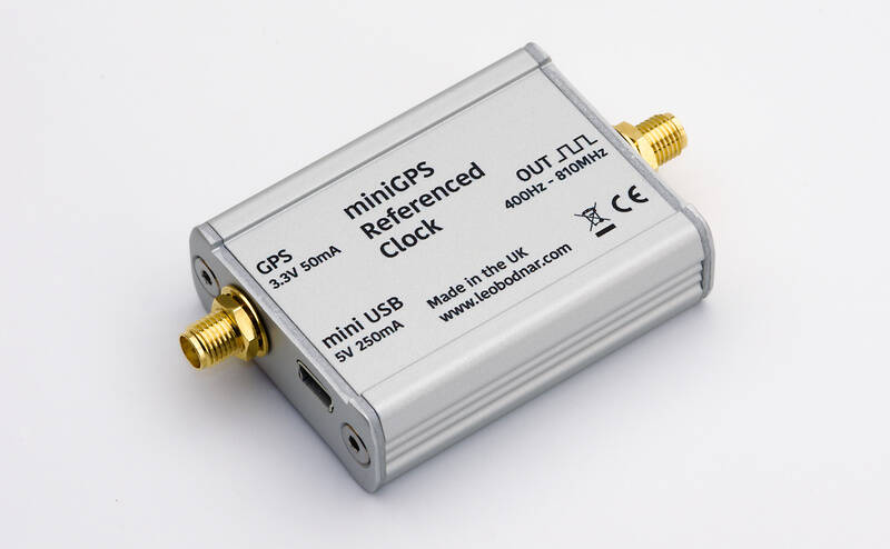 The reference clock is phase locked and has very low jitter. The unit needs a signal from a GPS receiver, and there are lots of them in the market. The unit is connected to a pc and set to 27.000000 MHz and low power output. The output connector is connected to a little network in order to block DC and attenuate 10 dB. With a small high Q sma cable this network is connected to the input jack of the RX888MKII unit for external clock.